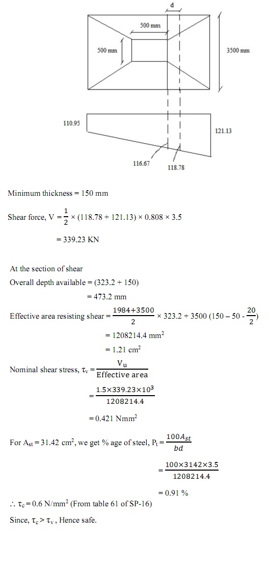 Here we have taken an example to depict how the calculations are done for an isolated footing. The column dimensions, grade of concrete and steel, design axial load, design bending moment of the structure, and soil bearing capacity are assumed. Also, we have assumed 75 mm brick flat soling as well as PCC with M 10 as the grade of concrete in PCC. In SBC, 25% is increased so that the footing can be designed for higher value. As the footing becomes safe for higher value of SBC then naturally it will be safe for any value lower than that.